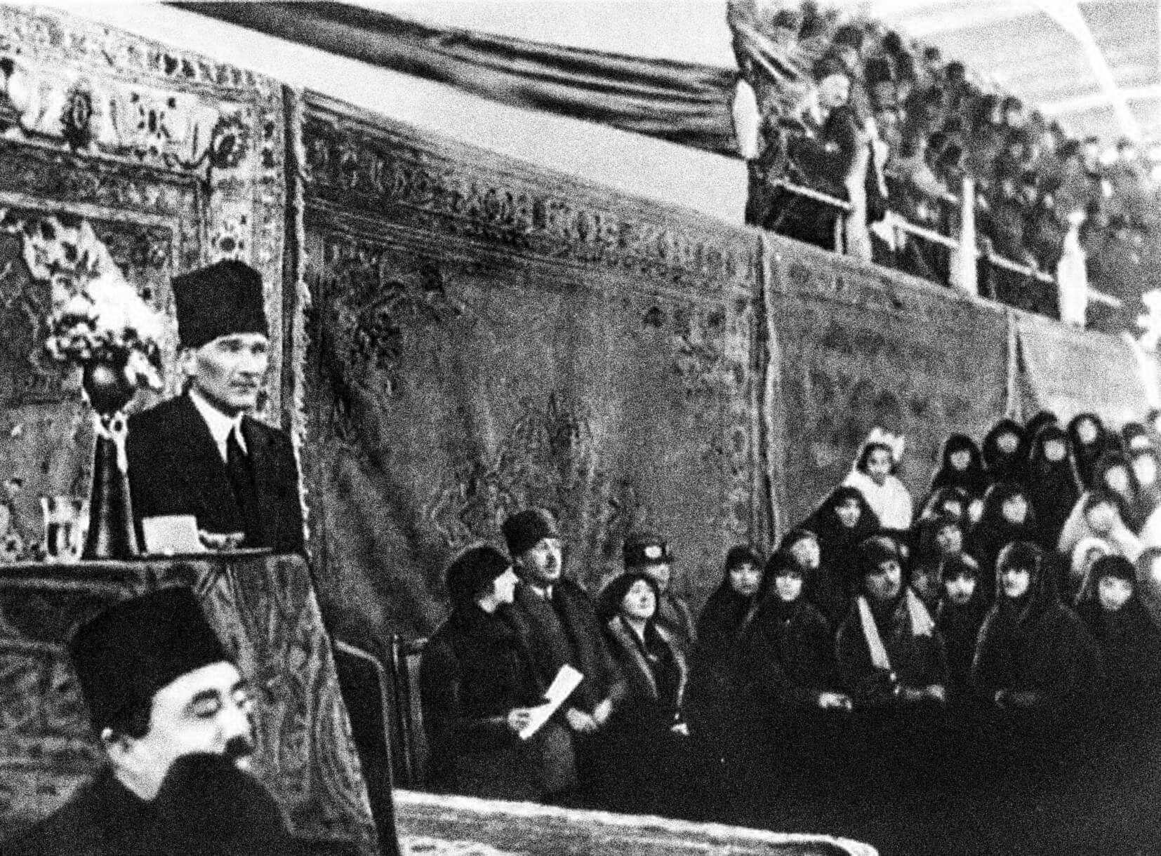 Mustafa Kemal Paşa, aynı gün, İzmir Kız Öğretmen Okulu’nda da öğrencilere Cumhuriyetin anlamını, “Cumhuriyet nedir ve sultanlıktan farkı nedir?” sorusundan yola çıkarak açıkladı: