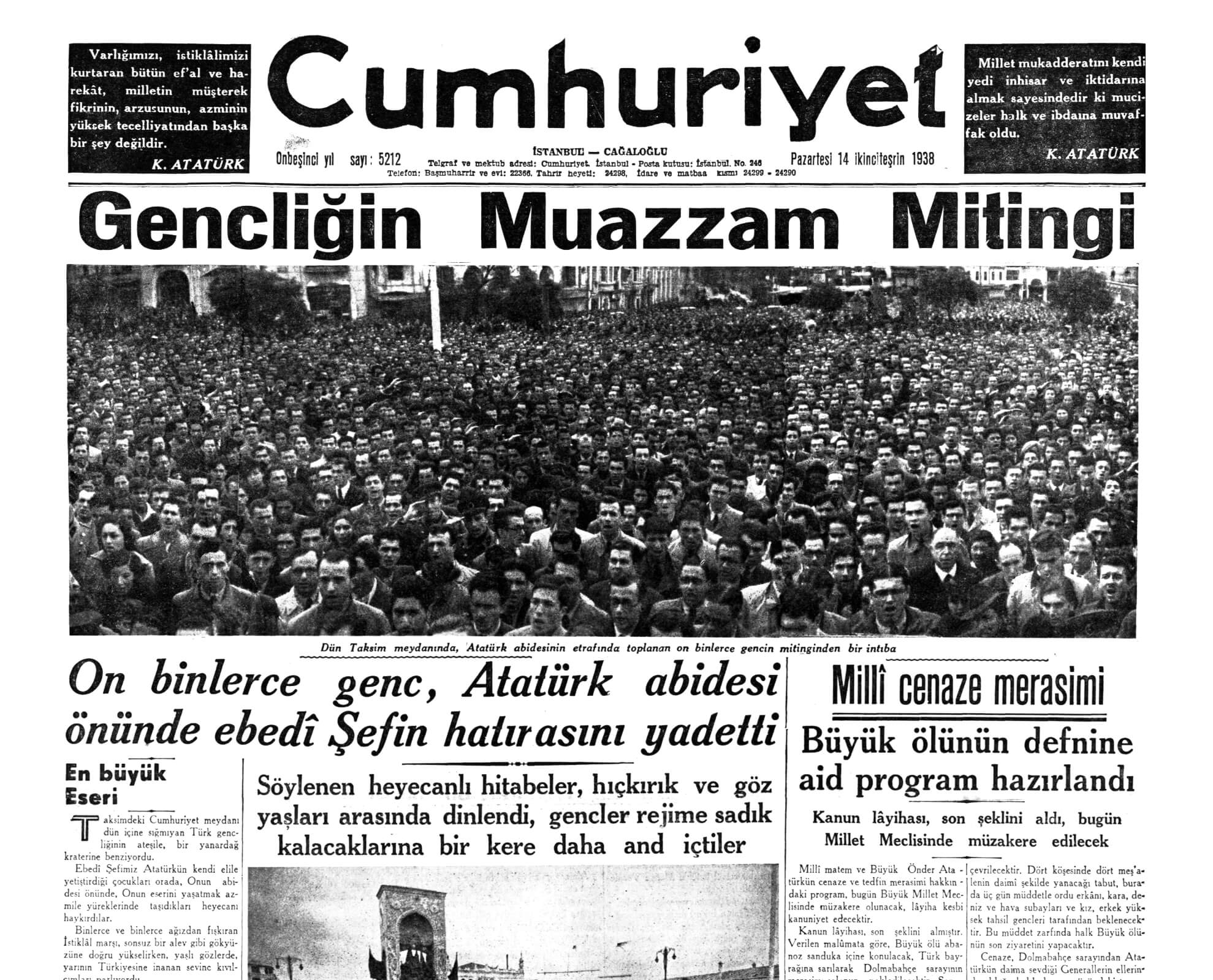 Bugünkü hükümetimiz, devlet teşkilatımız doğrudan doğruya milletin kendi kendine, kendiliğinden yaptığı bir devlet teşkilatı ve hükümettir ki, onun ismi Cumhuriyettir. Artık hükümet ile millet arasında geçmişteki ayrılık kalmamıştır. Hükümet millettir ve millet hükümettir. Artık hükümet ve hükümet mensupları, kendilerinin milletten ayrı olmadıklarını ve milletin efendi olduğunu tamamen anlamışlardır.
